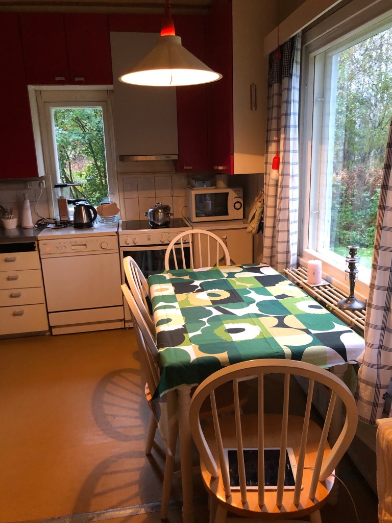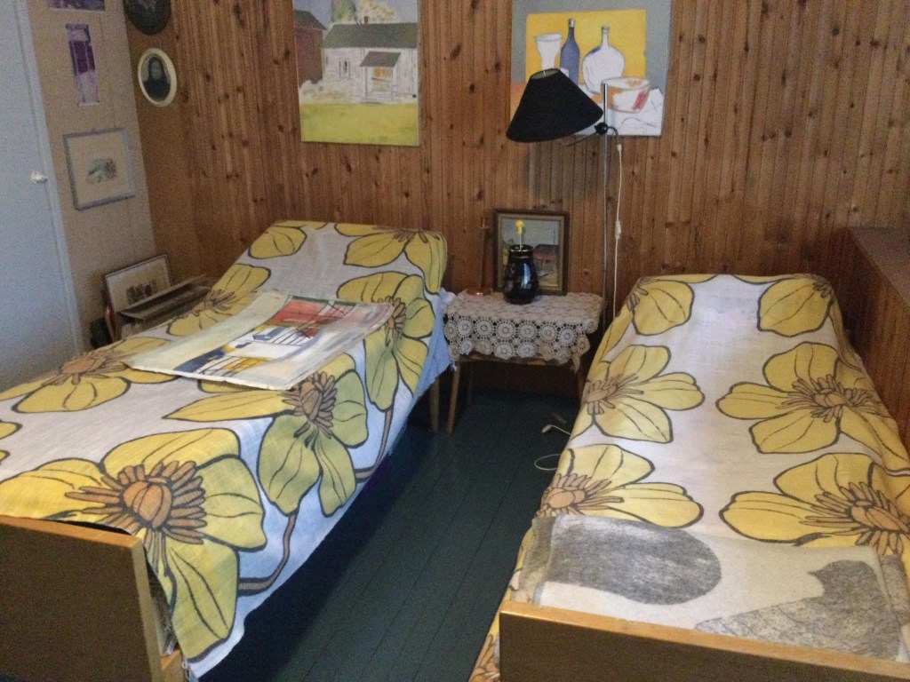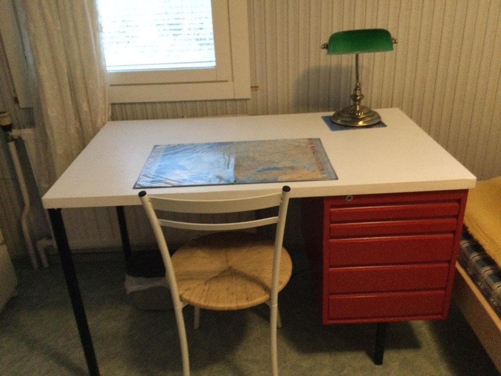 Yläkerta: työpöytä ja viehättävät majoitustilat. ( 2 huonetta, 4 vuodetta )